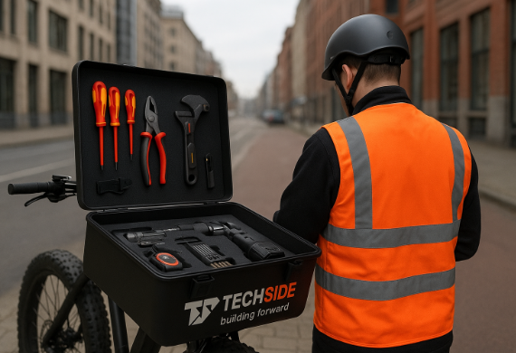 TECHSIDE biedt advies, installatie en onderhoud van technische installaties, ondersteund door snelle service met elektrische fietsen.